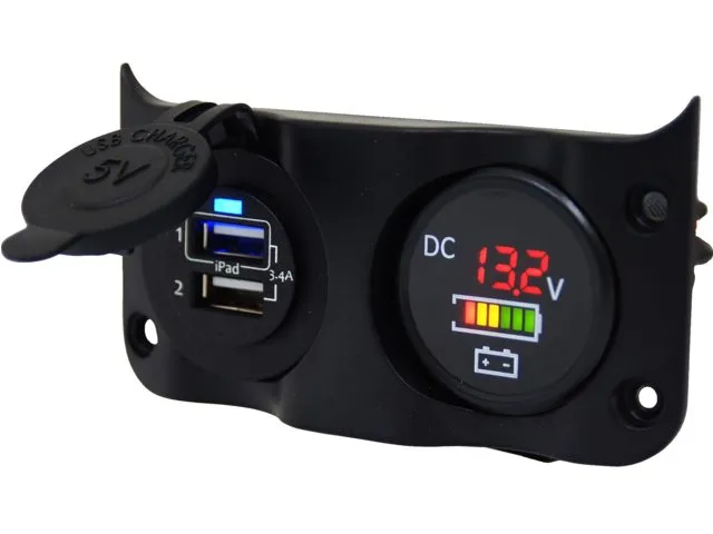 - Doplněk spínacího panelu s dvojitým USB a digitálním voltmetrem/indikátorem baterie
