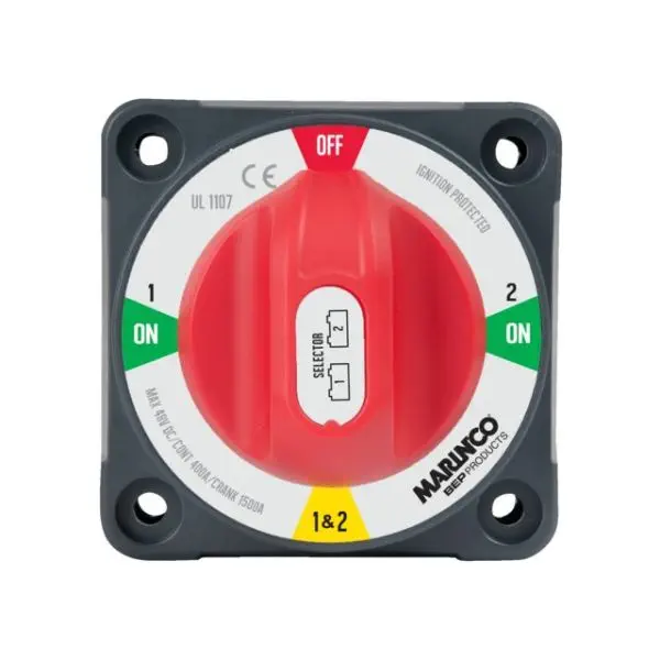 Přepínač baterie vhodný pro přepínání mezi dvěma bateriemi nebo paralelní připojení baterií. K dispozici také ve variantě EZ-mount. Tyto modely jsou vybaveny bez AFD.
